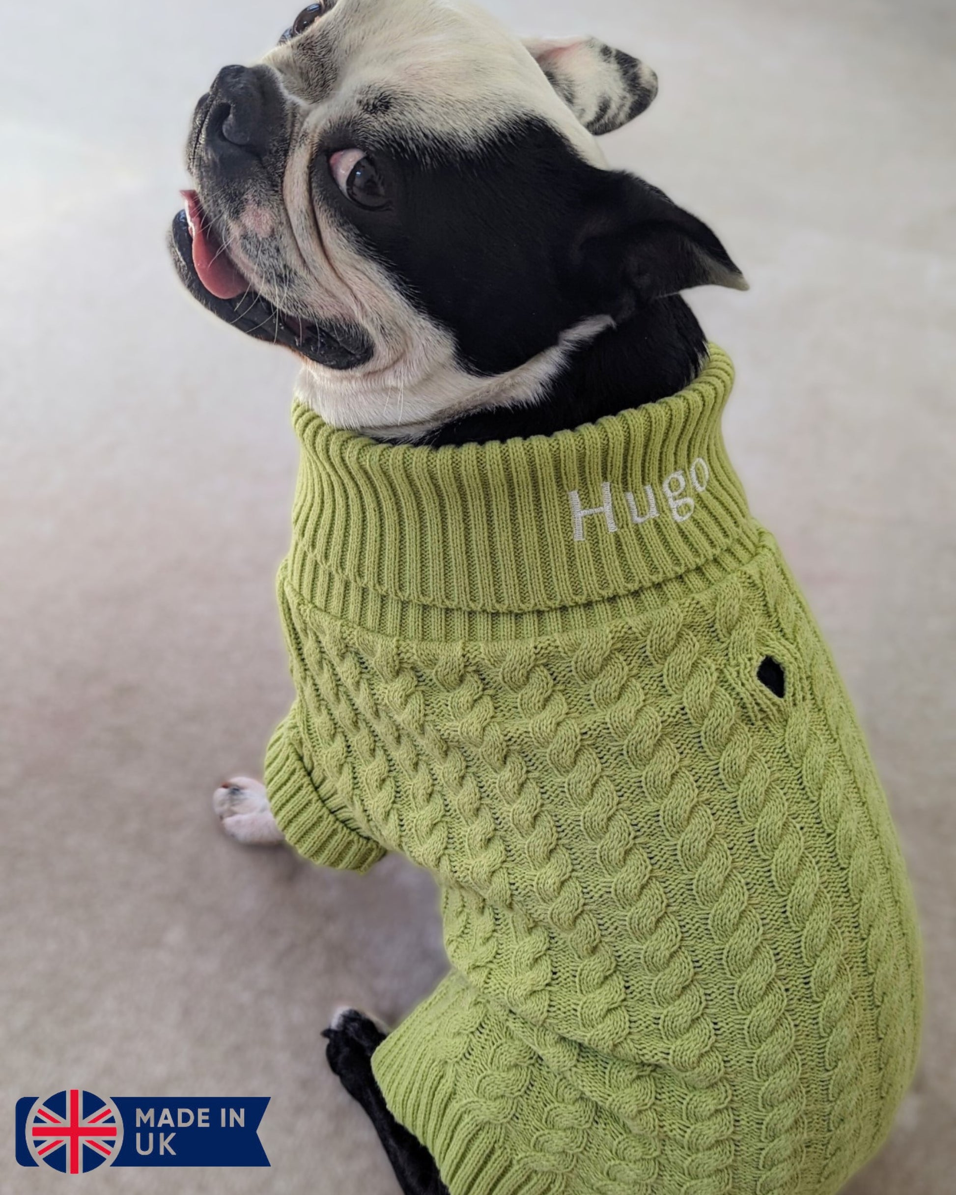 Elevate the style game for your entire family with our premium knitted roll neck jumper for dogs. And the excitement doesn't stop there! We offer a matching cardigan for your children, creating a coordinated and adorable look. Personalise both the dog's jumper and the children's cardigan with their names, adding a special touch to these fashionable ensembles. Embrace the joy of twinning with your furry friend and little ones, showcasing a harmonious blend of fashion and love. Step out in style together and create cherished memories in these meticulously crafted, personalised pieces. Made in the UK